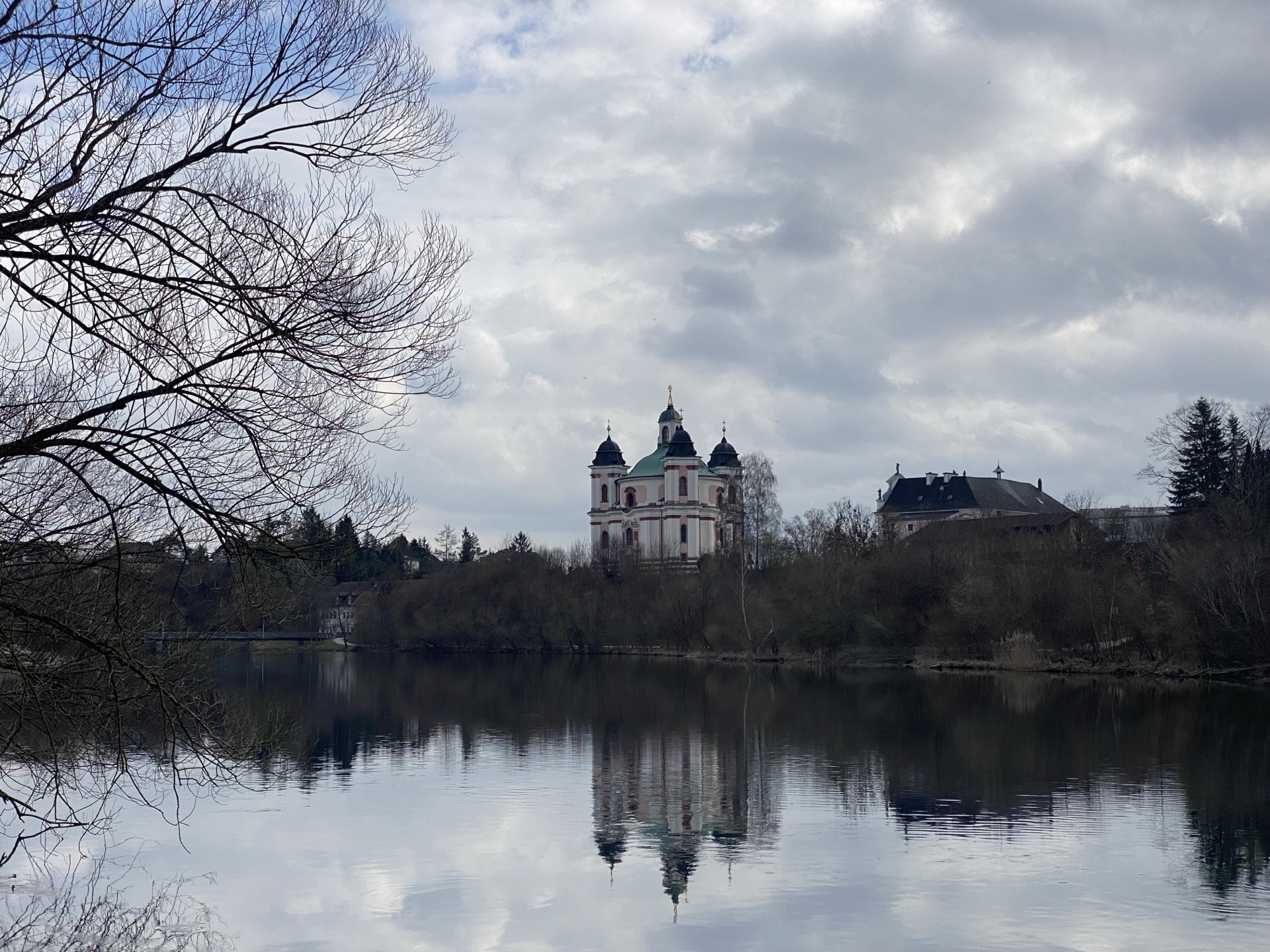 Wenig später geht es an die wenig begeisternde Rampe hoch nach Sattledt, aber mit zwei spontan eingebauten Umwegen, die unnötige Höhenmeter vermeiden, geht es dann doch ganz passabel. Die Gegend insgesamt ist aber bestenfalls eher mittelattraktiv. Dafür lockt eine Abfahrt nach Kremsmünster, die man mal wieder auch auf die vierfache Entfernung hätte aufteilen können anstatt die Radfahrer dauernd zum Bremsen zu zwingen (zumal bisher in ganz Österreich gefährlicherweise noch der Wintersplit auf den Radwegen liegt - auf den Straßen direkt daneben wird hingegen kein Wintereinbruch mehr erwartet…).
