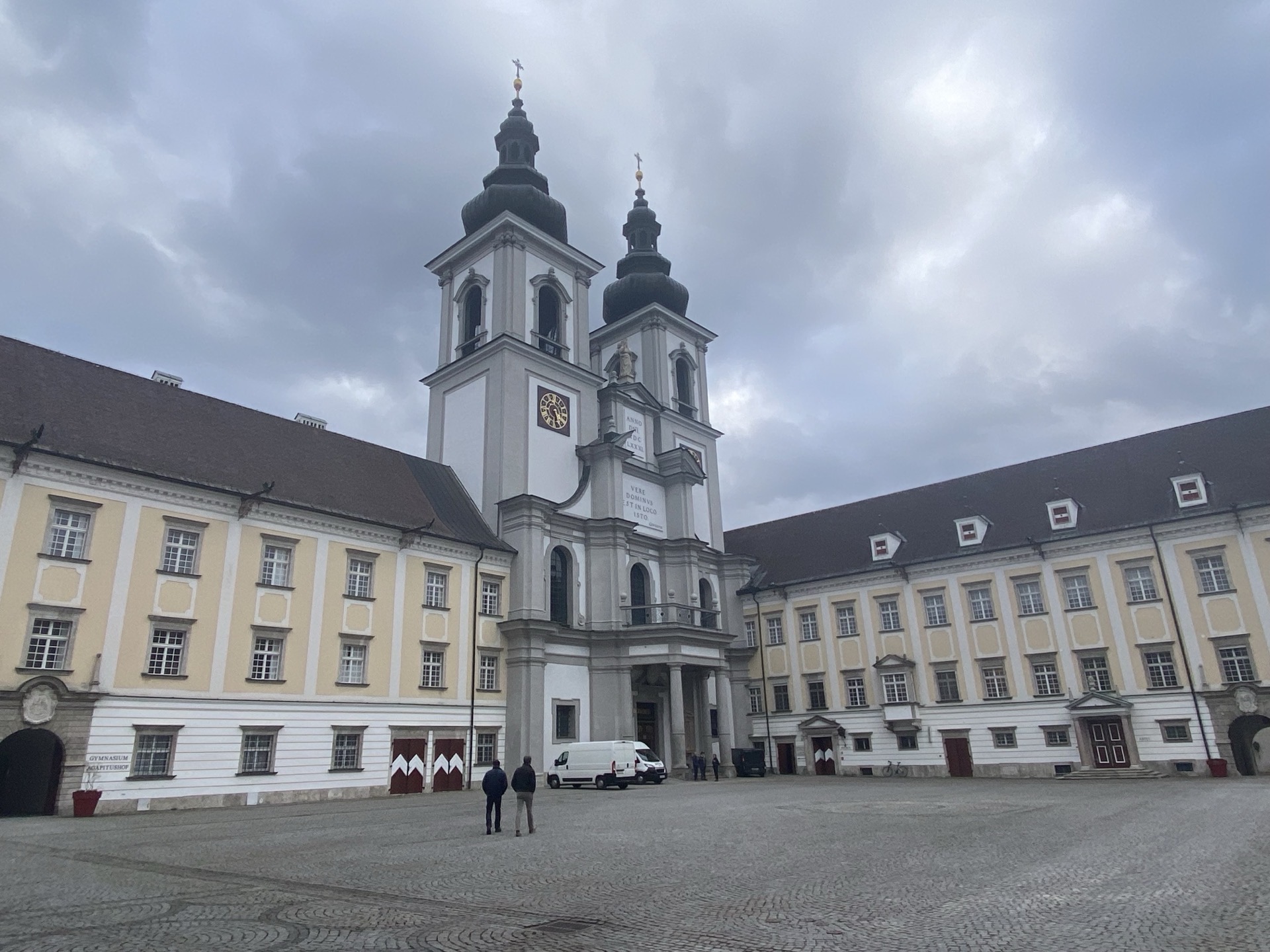 Das Stift in Kremsmünster ist durchaus beeindruckend, die Kirche wird jedoch gerade ziemlich massiv „renoviert“. Eine Gruppe von gut 10 Personen steht vor der geschlossenen Kirchentür im Weg. Meine Frage, ob man in die Kirche trotz Baustelle hinein könne, wird mit verwunderten Blicken beantwortet, zwei weitere Fragen abschlägig. Erst als ich sie jetzt nur noch mäßig höflich auffordere, mich mal bitte durchzulassen, scheint mein Begehr verstanden zu werden. Jedenfalls scheint sich keiner auf ein Handgemenge einlassen zu wollen (ich ja sowieso nicht). Gelohnt hat sich’s nicht, weil nur ein Seitenschiff zugänglich ist, aber reichlich irritierend ist die Situation schon…