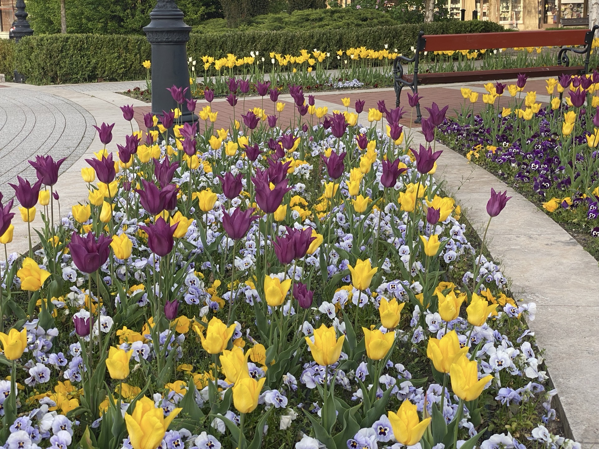 Große Wanderungen unternehme ich heute Abend nicht mehr, die Beine merken die vielen Anstiege dann doch. Aber auch die direkte Umgebung des Hotels ist sehr ansehnlich, schön bepflanzt, mit diversen Skulpturen und Denkmälern und einer sehr sommerlichen Atmosphäre (kein Wunder bei 28° Außentemperatur). Fußgängerzone mit Tischen im Schatten. Perfekt. Auch diese Altstadt ist im guten Zustand - sehr erfreulich!