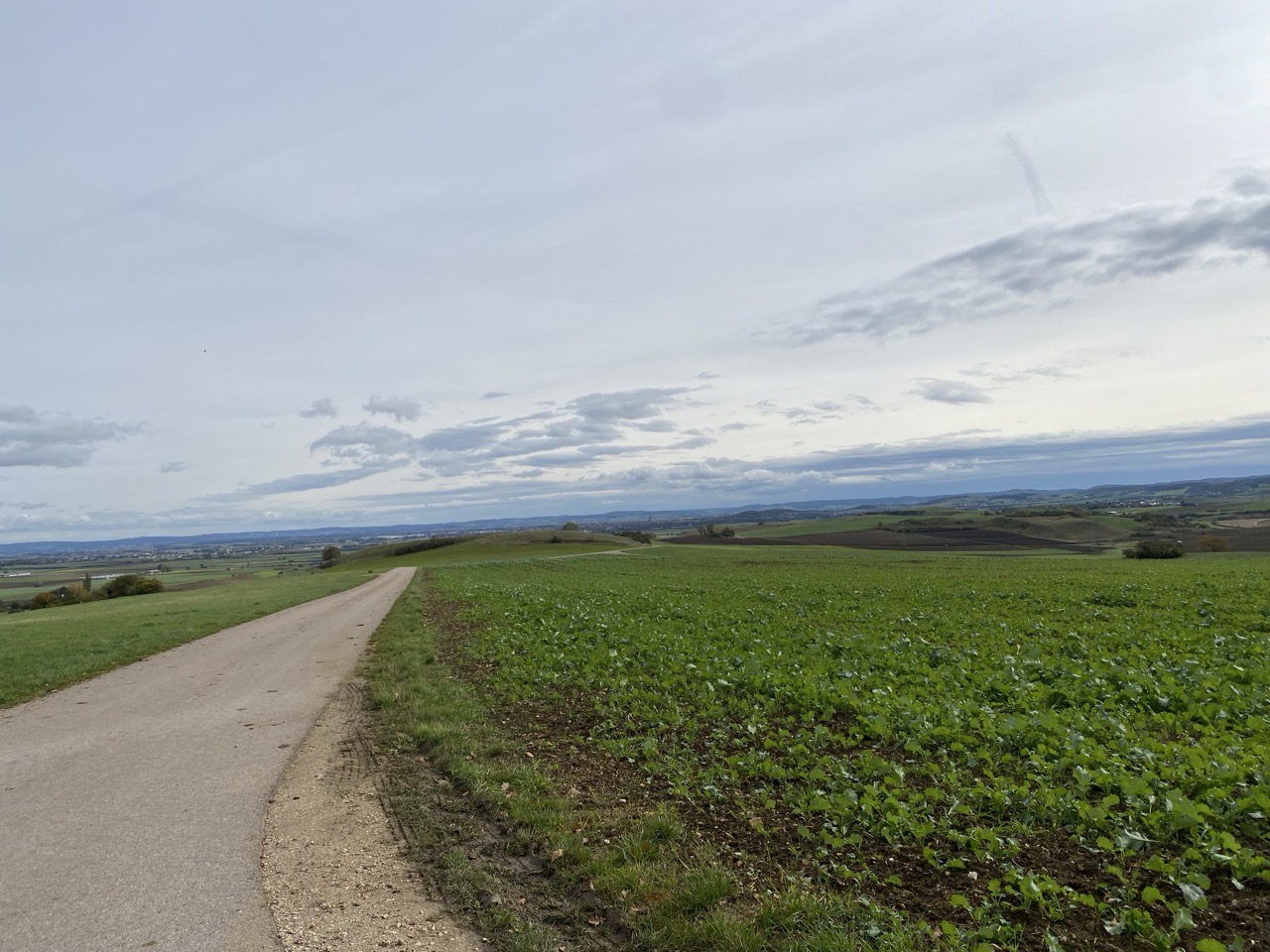 Wenige hundert Meter vom Hotel entfernt, „überredet“ mich ein gut erscheinender, beausgeschilderter Radweg zu einer reichlich unattraktiven Bundesstraße, umzuschwenken. Dass es kräftigen Gegenwind gibt, ist den Machern des Radweg nicht vorzuwerfen, dass der Radweg aber rund 100 unnötige Höhenmeter überwindet hingegen schon. Mein linkes Knie schätzt diese unbegnadete Routenwahl ebenfalls nicht. Aber es hilft nichts, man muss aus dem Meteoriteneinschlagkrater irgendwie wieder raus, in meinem Fall zum Nordrand der Schwäbischen Alb - die Grenze zu Baden-Württemberg liegt eh seit dem Stadtrand von Nördlingen hinter mir.