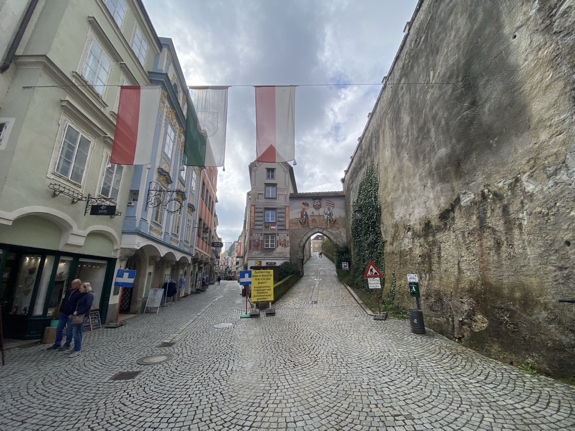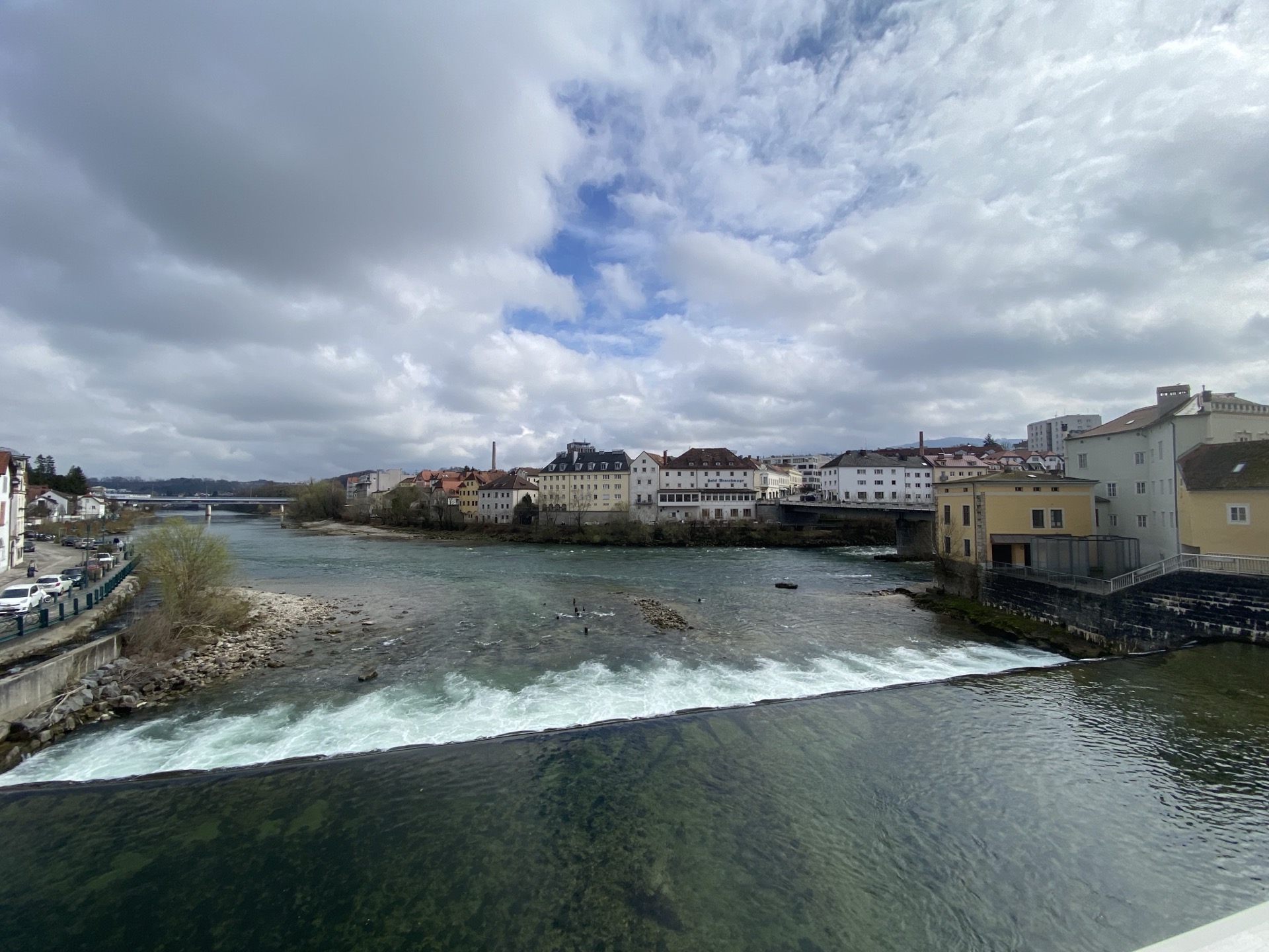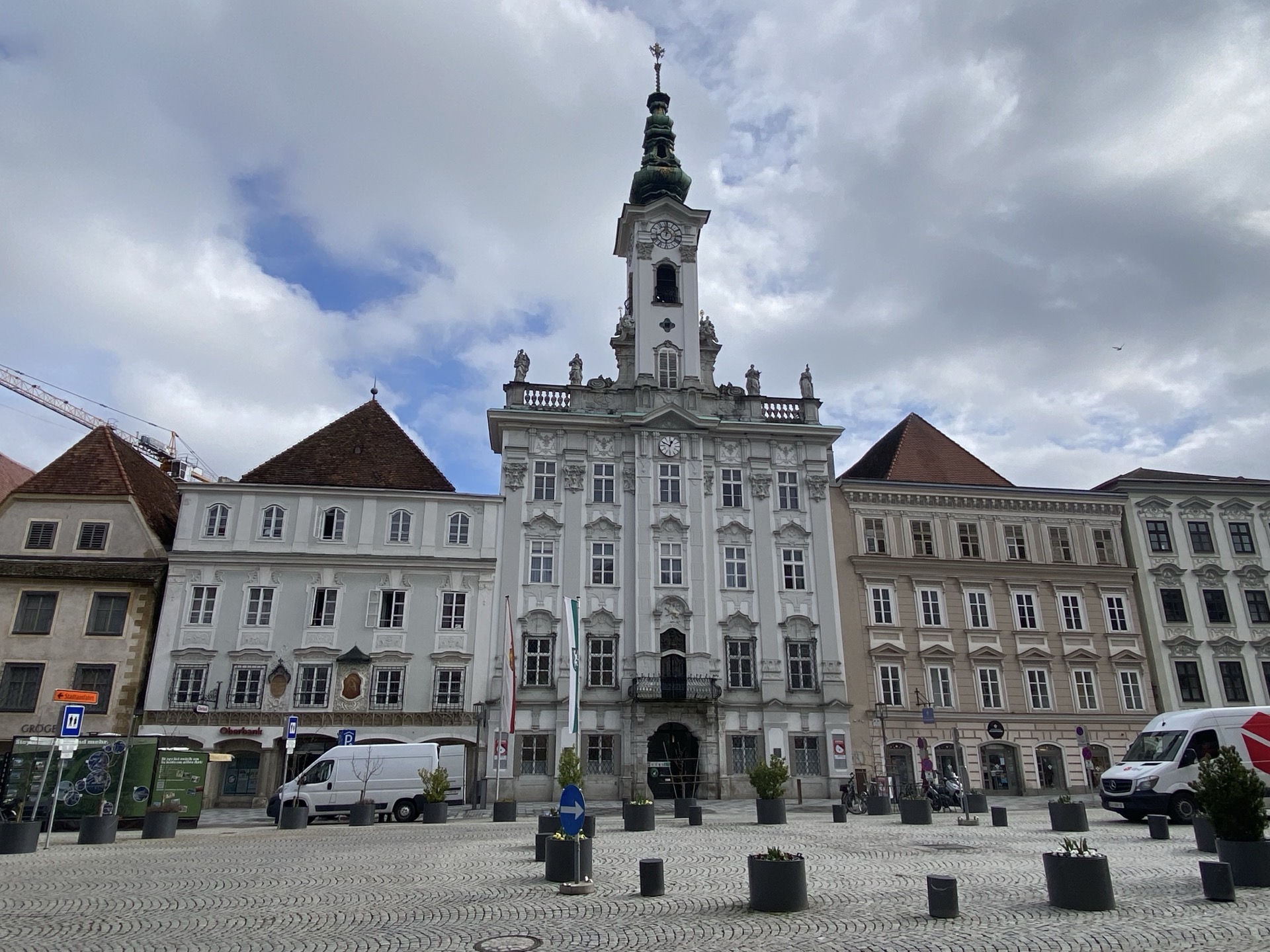 Verblüffend, dass Steyr nicht in der Steiermark liegt, aber es gibt wohl schon einen Zusammenhang: die Steyrer Fürsten waren maßgeblich bei der Schaffung der Steiermark beteiligt. Der Flussname geht auf die Kelten zurück und bezieht sich darauf, dass die Enns, wenn sie viel Wasser führt, die Steyr wohl praktisch aufstaut. Wie dem auch sei, Steyr ist durchaus sehenswert - der Stadtplatz ist Schauplatz der Mittagspause bei inzwischen heiterem Wetter.