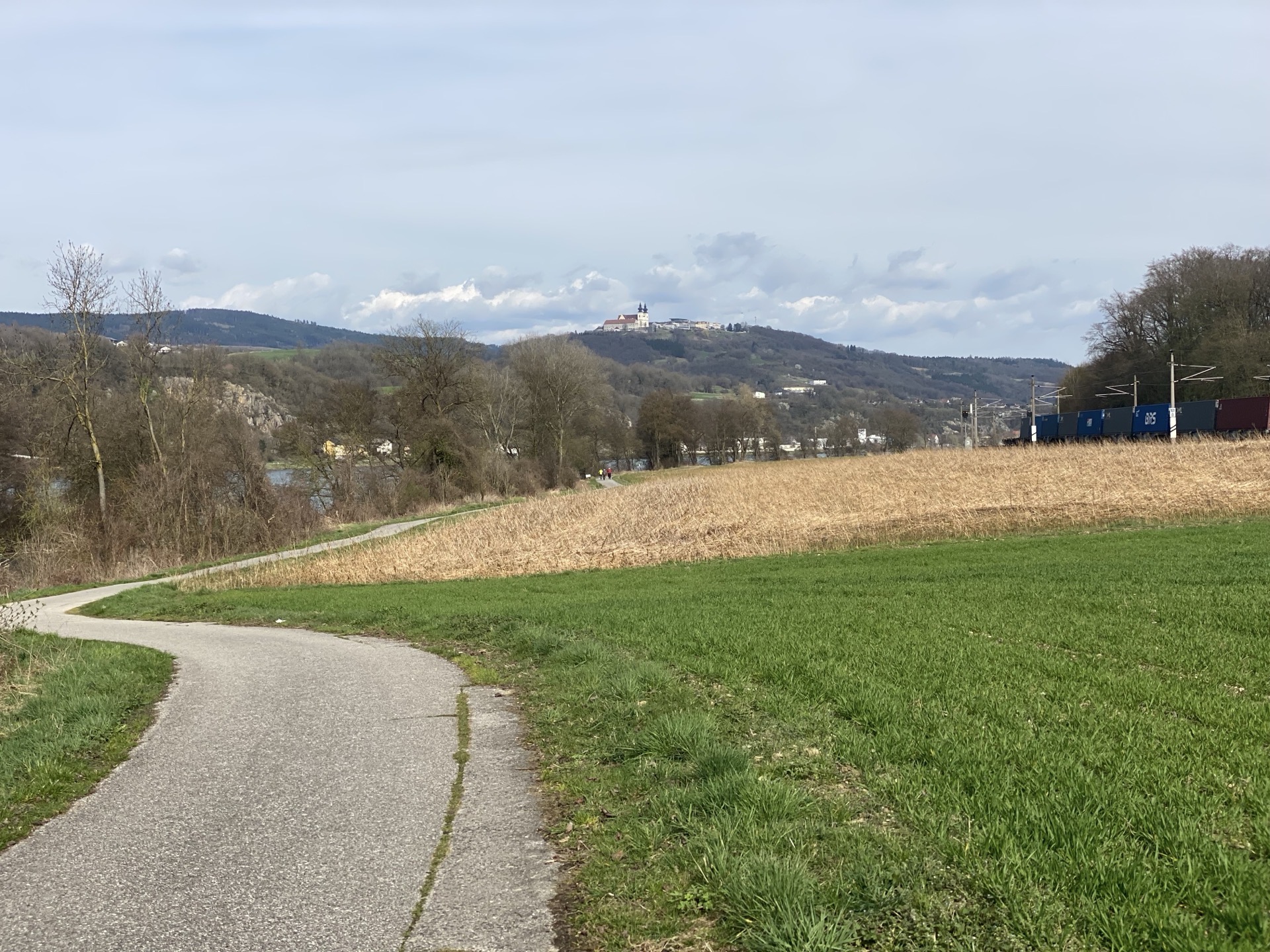 Dort liegt kein Wintersplit mehr, der Asphalt ist zumeist schön glatt, es gibt sogar leichten Rückenwind, also 24. Gang (von 27) eingelegt und ab die Post. Und weil es so gut läuft, beschließe ich in Melk auch die restliche Strecke an der Donau entlang zu fahren. Ich muss mir nur merken, bei einer etwaigen Donautour diesen Abschnitt am linken Ufer zu fahren, damit es Neuland bleibt. Aber ansonsten passt - wenn man berücksichtigt, dass der Wienerwald das äußerste nordöstliche Ende der Alpen ist - auch diese Route noch irgendwie unter „sich am Fuß der Alpen entlangmogeln“, oder? Und, wie hatte mir der Glückskeks in einem chinesischen Restaurant in Attnang prophezeit: du kannst Berge versetzen - tja, wer ko', der ko'…