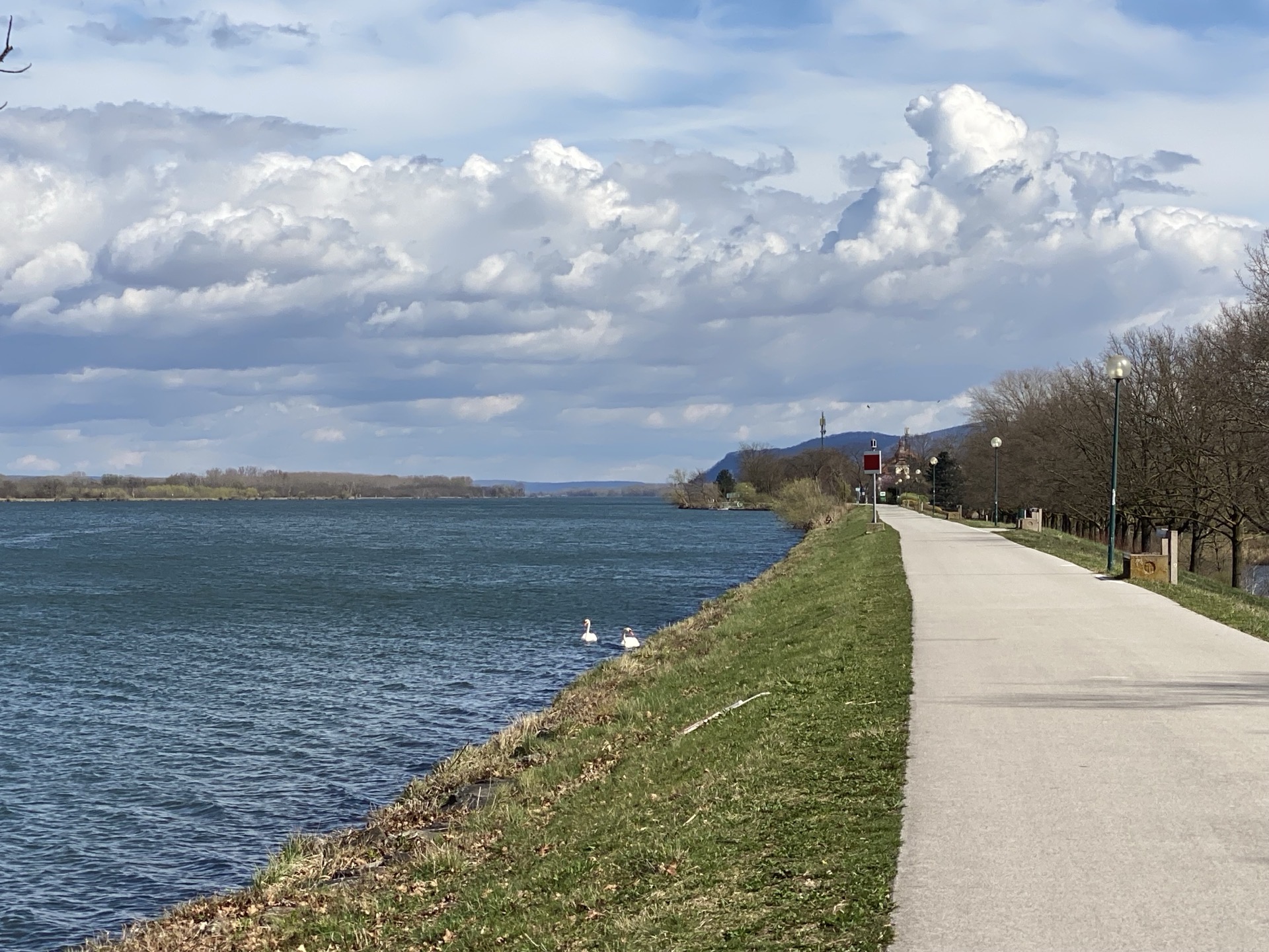 Ein frühes Frühstück und auf geht‘s zur letzten Etappe nach Wien. Das erste Stück ist im Routenverlauf etwas stärker kreuz und quer als man es dem Donauverlauf nach vermuten würde, aber die Beschilderung ist nach wie vor prima und sobald die Donaudampfschifffahrtsgesellschaft selbst zuständig ist, ist auch die Asphaltqualität weiterhin top, sobald deren direktes Zuständigkeitsgebiet verlassen wird, ist die Radwegqualität deutlich normaler, aber das sind nur relativ kurze Strecken.