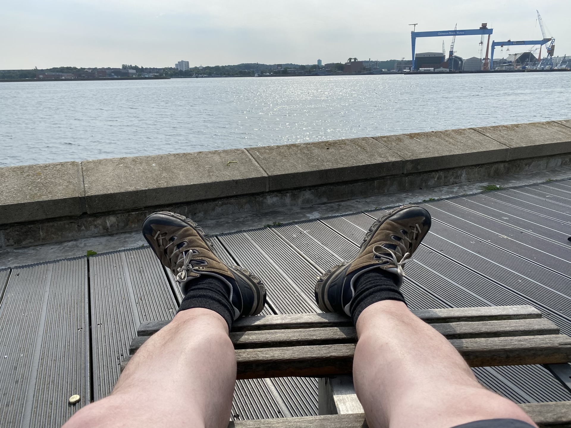 Ein logistisches Miniknäuel lässt sich dann wie folgt wieder auflösen: ich fahre mit dem Fahrrad zum Bahnhof, mit dem Fahrrad im Zug nach Itzehoe, stelle das Fahrrad dort ab, fahre dann ohne Fahrrad im nicht-fahrradmitnahme-kompatiblen Bus weiter nach Brunsbüttel, gehe zum Auto, fahre mit dem Auto zurück nach Itzehoe, lade das (in der Zwischenzeit nassgeregnete) Fahrrad ein und fahre dann endlich zurück nach Frechen, wo die Tage bei gutem Wetter noch unser alljährliches Grillfest möglich sein sollte.