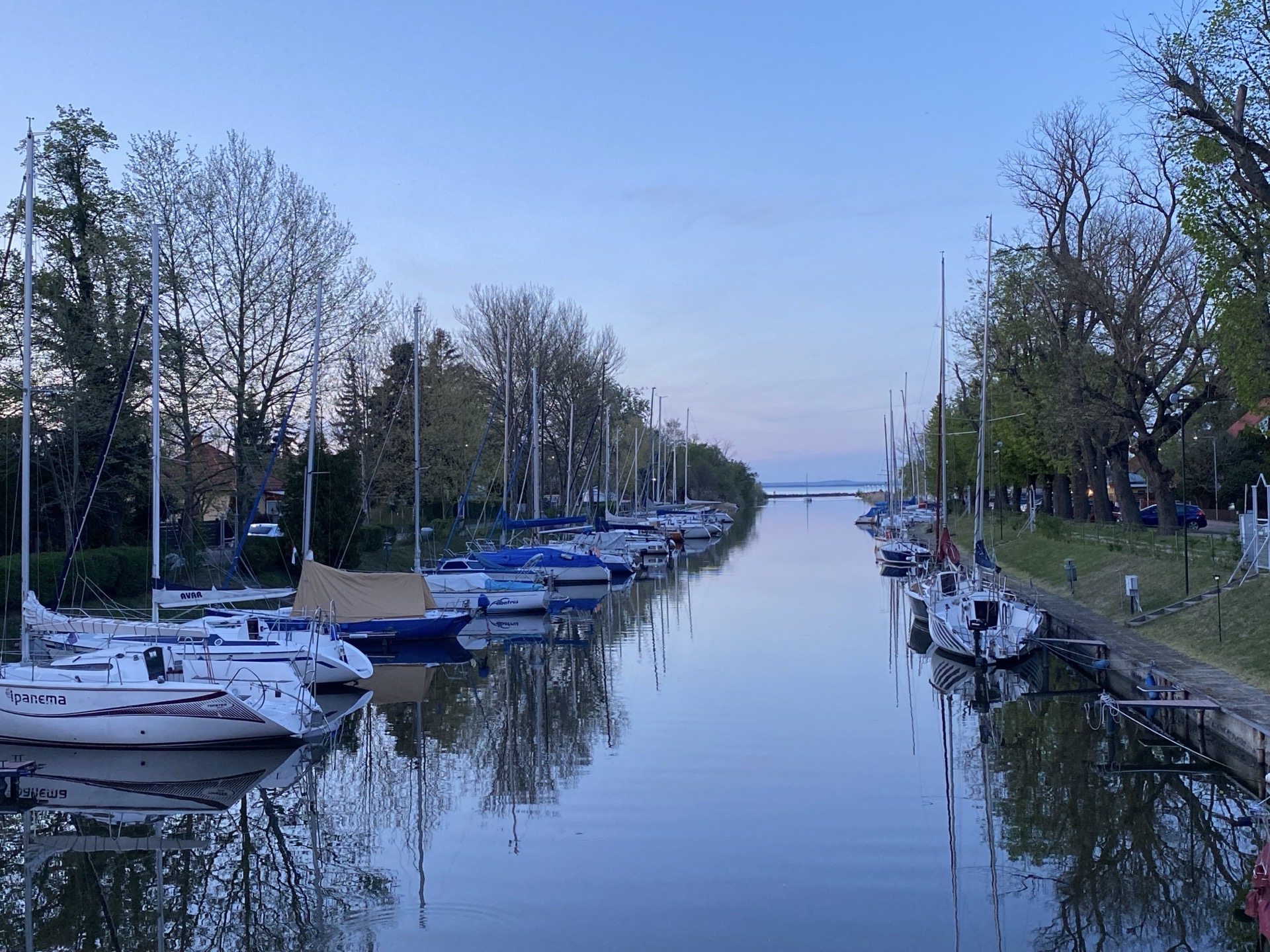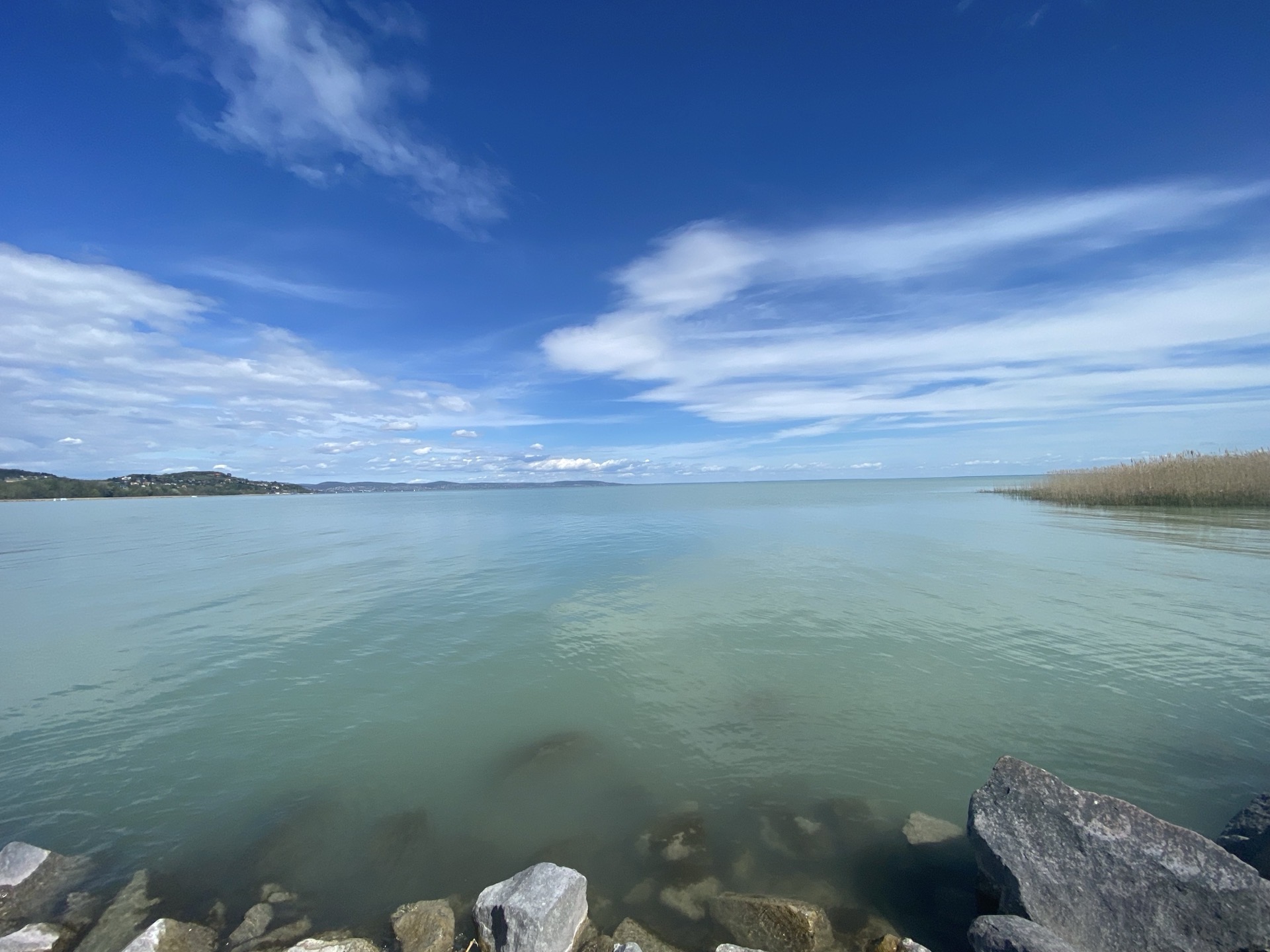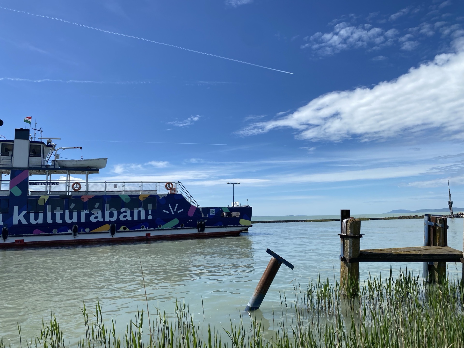 Eine kleine Pause an der Fähre nach Tihany, wo man einen schönen Blick hat und feststellt, dass der See nach Westen doch noch ein Stück größer ist als von Siófok aus zu erkennen. Ansonsten gibt es eigentlich keine besonderen Vorkommnisse - an Stellen, an denen es mir gut gefällt (die meisten heißen Balaton-xyz), mache ich weitere Pausen und trudele am Abend nach einer vergleichsweise relaxten Tour in Balatonberény ein, dem westlichsten Ort am südlichen Ufer.