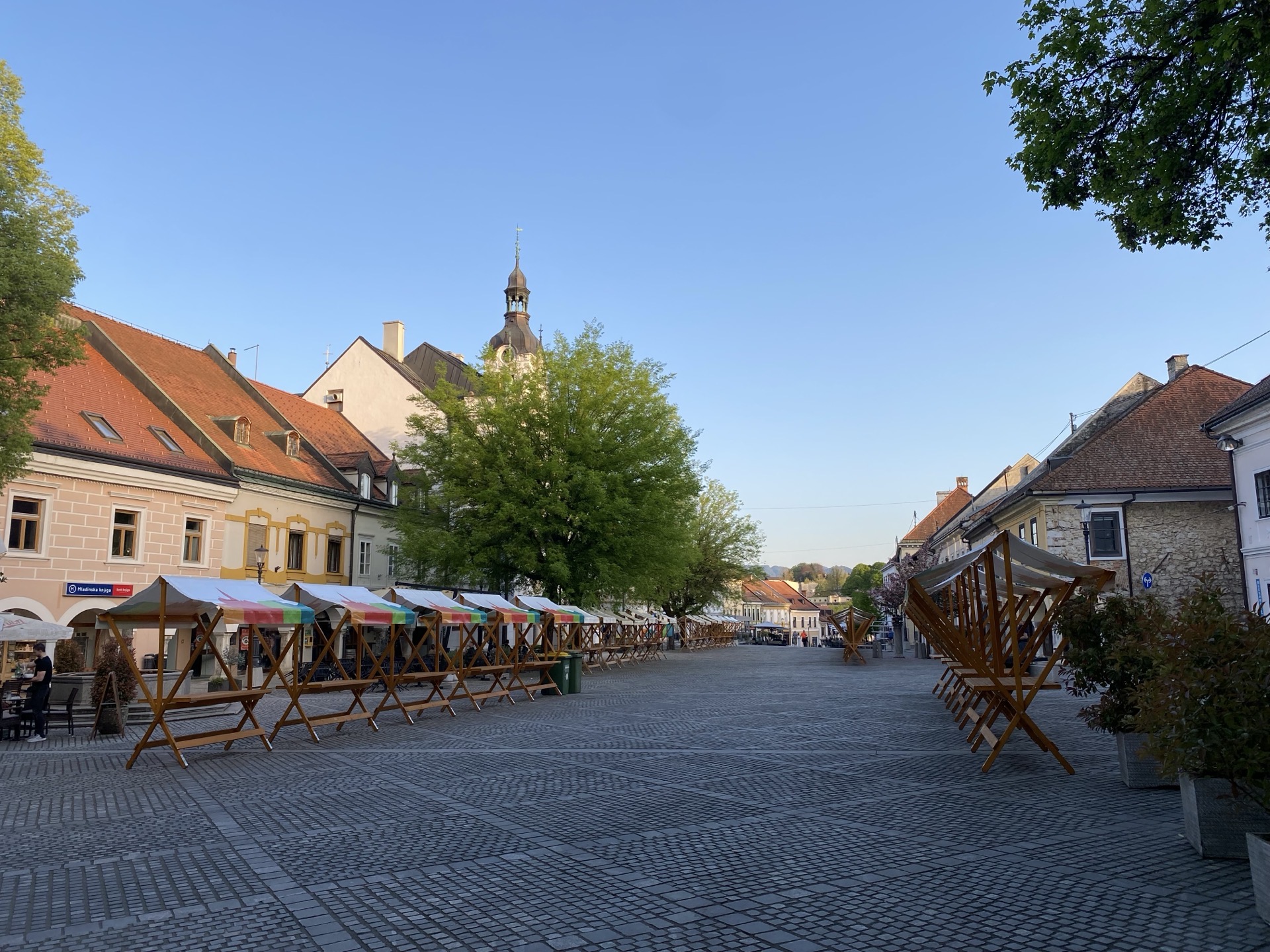 Auf dem Großen Platz findet einiges Markttreiben statt. Wieder ist auffällig, wie viele Leute in den vielen Cafés und dem einen Restaurant sitzen. Und wie gut die Angestellten Deutsch und Englisch sprechen (obwohl unterwegs die Verständigung erneut reichlich schwierig war). Ich teste meine inzwischen entwickelte These bei einem Kellner im Restaurant mit ein paar zunächst unverfänglichen Fragen und in der Tat: die Arbeitsplätze in den Städten sind (wie so oft) besser bezahlt, setzen aber Fremdsprachenkenntnisse voraus. Dadurch werden auch sehr viele Arbeitskräfte aus dem ländlichen Umfeld angezogen, wenn sie denn eine oder mehrere Fremdsprachen beherrschen. "Auf dem Land" bleiben fast nur noch Leute übrig, die diese Sprachkenntnisse eben nicht haben. Schon verblüffend, wie heftig der Effekt und wie trennscharf das Ergebnis ist. Der erste oder letzte Stop in einer Stadt ist völlig problemlos, auf der anderen Seite des Ortseingangsschilds sind andere Sprachen kaum verfügbar.