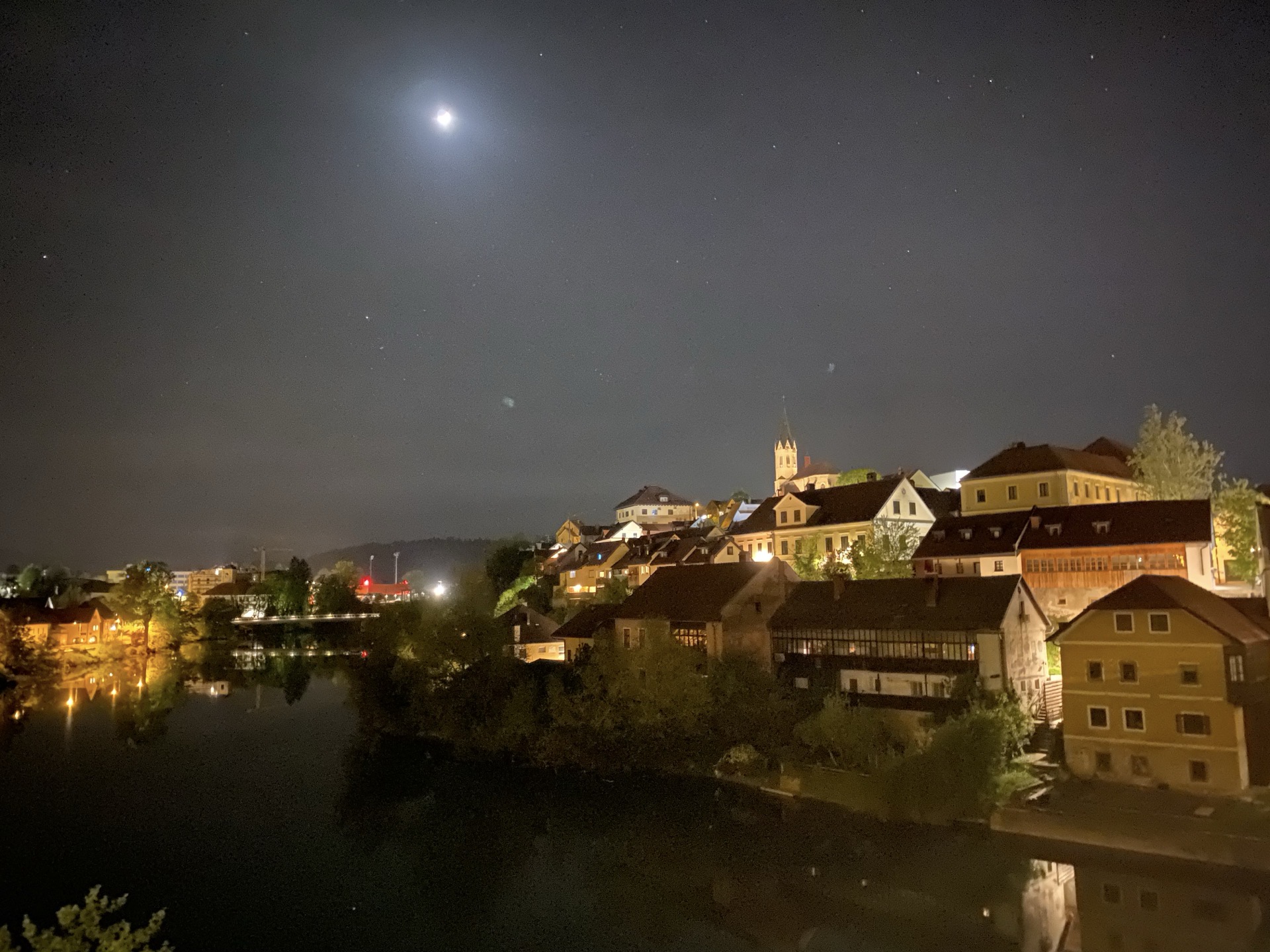 Novo Mesto heißt auf deutsch Neue Stadt, was so nicht ganz stimmt, immerhin ist die Stadt von 1135, folgerichtig liegt mein Hotel in der Altstadt von Neue Stadt, das ist fast wie "höchster Berg von Niederösterreich". Andererseits warum auch nicht? Altstädte gibt es ja auch in anderen Neustädten (z.B. in Wiener Neustadt, das noch dazu gar nicht zu Wien gehört und insofern ein komplettes Täuschungsmanöver ist) und umgekehrt gibt es ja auch z.B. in Altötting durchaus Neubaugebiete.