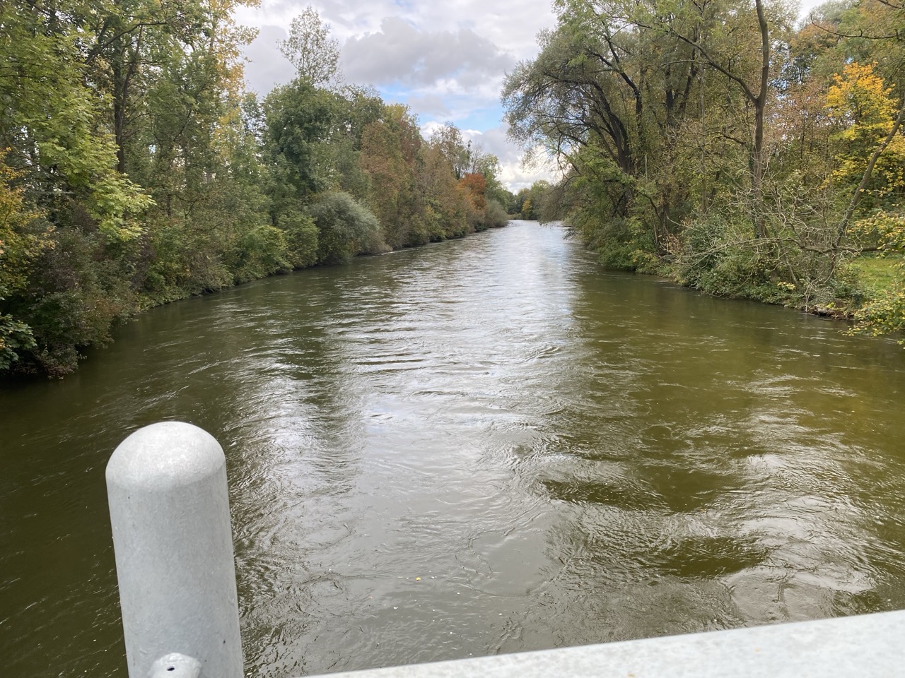 Im Ergebnis kann ich erst heute losfahren. Entspannter wird die Fahrt dadurch nicht, aber immerhin komme ich für meine Verhältnisse recht früh los. Einmal diagonal durch die Stadt und als gegen 11 Uhr ein Regenschauer durchzieht, dem ich es nicht gönnen will, gleich am ersten Tag die Regenklamotten einzuweichen, bin ich schon in Lochhausen und verkrümele mich in einem Café. Nach der Unterbrechung geht es über Fürstenfeldbruck und Mering weiter nach Augsburg, wo ich unmittelbar nach Einbruch der Dämmerung eintreffe. Das wird mir auf dieser Tour wahrscheinlich regelmäßig passieren, weil die Tage schon nicht mehr richtig lang sind.