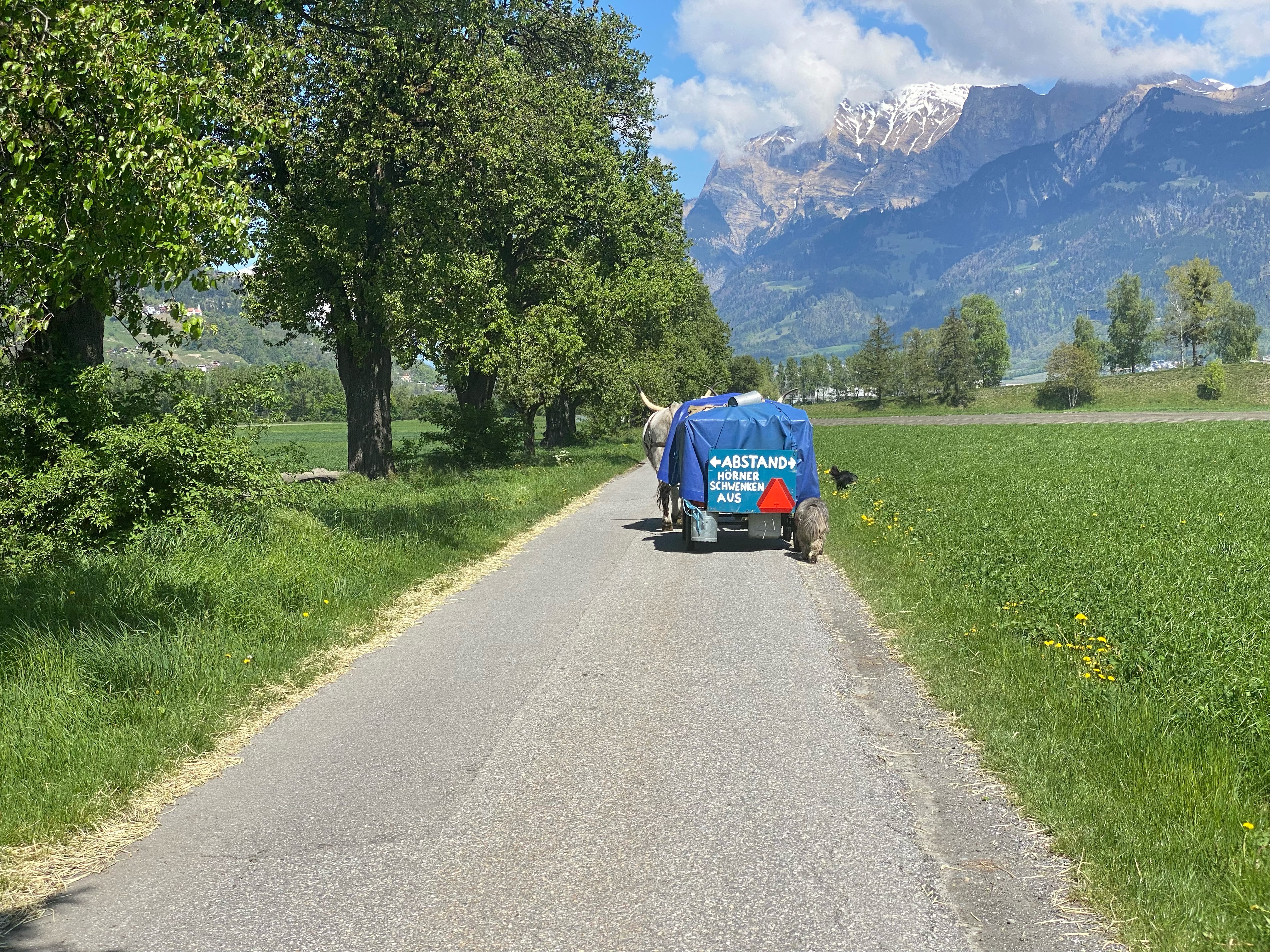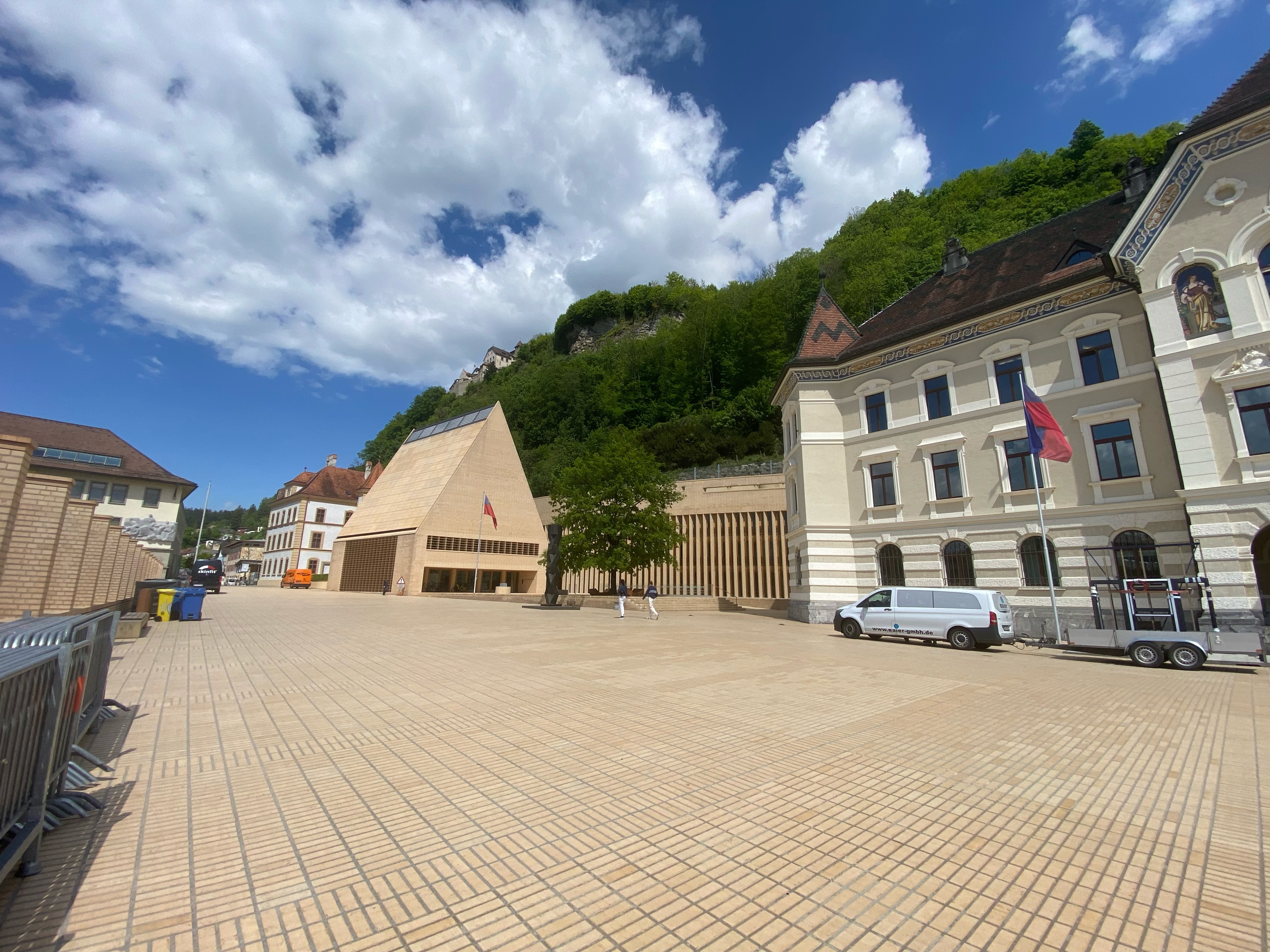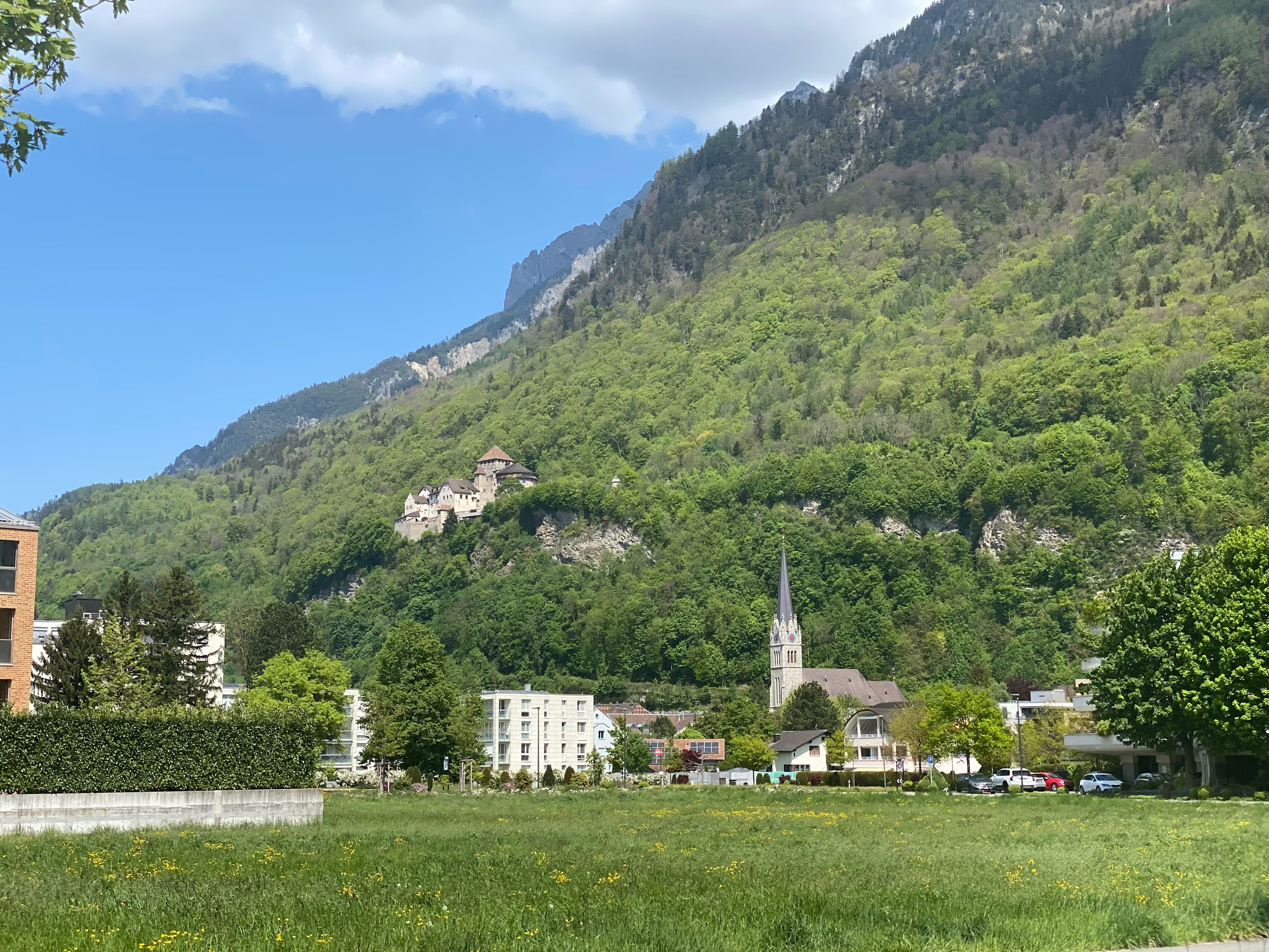 Es geht im gestreckten Galopp an Bad Ragaz vorbei und kurz vor Sargans rechts ab (natürlich dem Fluss folgend) und gleich auf die rechte Rheinseite hinüber nach Liechtenstein. Immer dem Rheindamm folgend, bis auf einen kleinen Abstecher zum Vaduzer Regierungssitz und Landtag, über denen das Fürstenschloss oben auf dem Felsen thront. Verblüffend, dass es daneben in einem so kleinen Reich auch noch Rathäuser braucht, aber am Geld fehlt es allem Anschein nach nicht: alles ist mit sehr edlen und blitzsauberen Oberflächen versehen, auch das auf den ersten Blick überdimensionierte „Logistikzentrum Liechtensteinische Post“ etwas außerhalb - andererseits: wenn man es nicht pro Einwohner, sondern pro Briefkasten betrachtet…